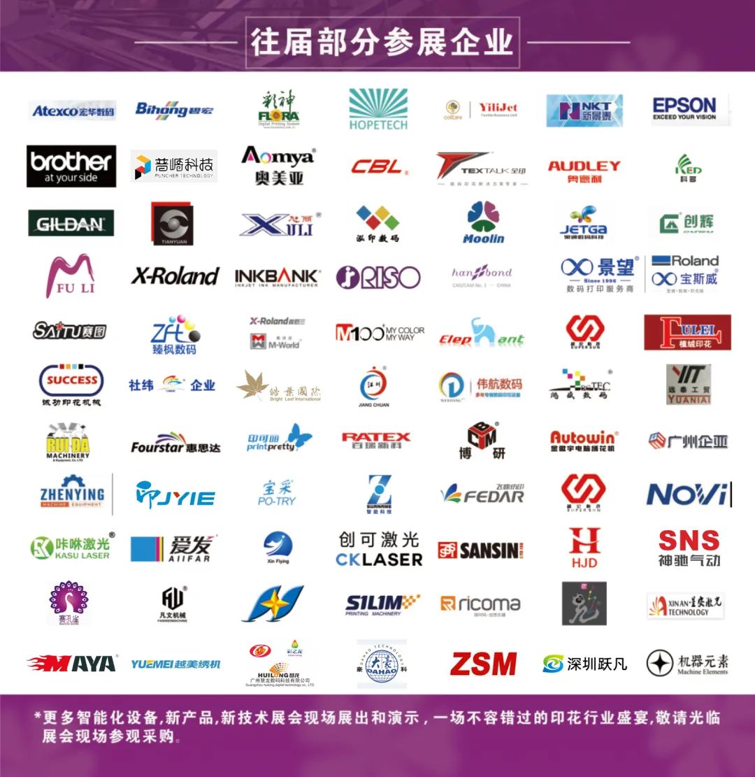 印花機(jī)械、印花材料、個(gè)性定制、智能縫制設(shè)備、刺繡設(shè)備、面料及輔料、智慧軟件、化學(xué)品染料及助劑類、印染設(shè)備及配件、其它等。